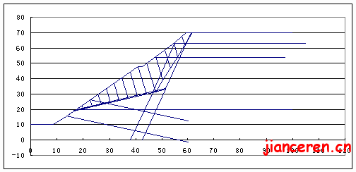 在邊坡的靜態(tài)穩(wěn)定分析工作中,往往要假設邊坡可能的滑動模式(陳祖煜,1995)。這個工作依賴于分析者對邊坡的了解和實踐經(jīng)驗。事實上在邊坡監(jiān)測過程中,我們也可以認為對應于任一時刻監(jiān)測資料所揭示的邊坡的安全狀態(tài),應該用某種滑動模式來考慮邊坡的穩(wěn)定性。簡單地說,如果邊坡監(jiān)測斷面上的位移、錨桿應力等測值呈現(xiàn)某種空間分布形式,且數(shù)值達到需要考慮邊坡穩(wěn)定性的程度,就該將其與邊坡的某種滑動模式聯(lián)系起來。