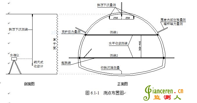 用于監測隧道圍巖的徑向位移分布和松弛區域范圍,獲得決定錨桿長度的判斷資料、隧道每一量測斷面布設3—5組測點。